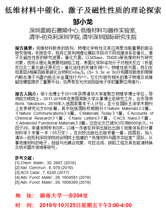 2019年10月25日邹小龙博士学术报告会