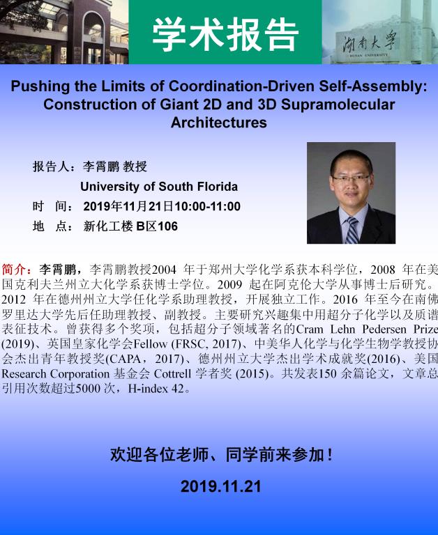 2019年11月21日南佛罗里达大学李霄鹏教授学术报告会