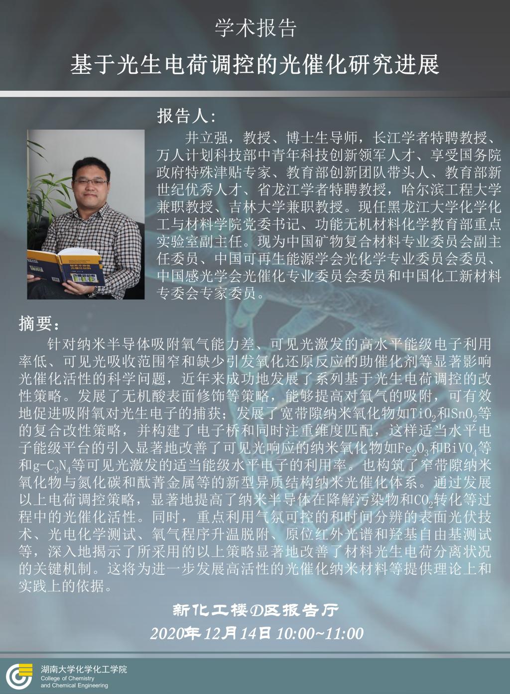 2020年12月14日黑龙江大学井立强教授学术报告会