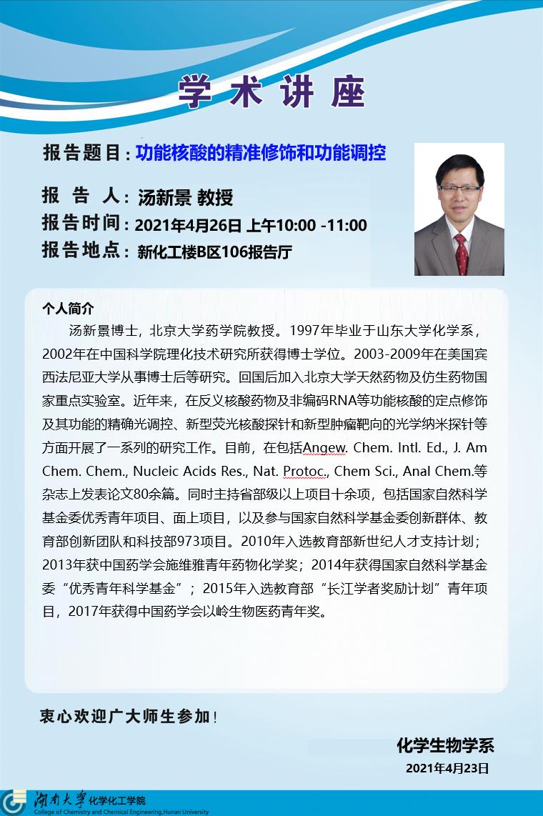 2021年4月26日北京大学汤新景教授学术报告会