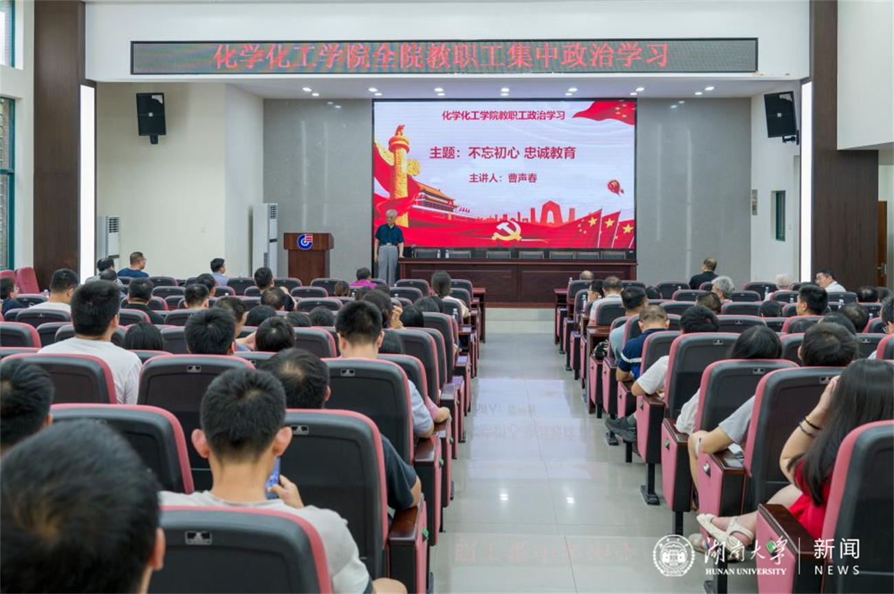 于新化工楼D区报告厅开展了2021年第十八次全体教职工集中政治学习。本次集中学习主讲嘉宾为退休教授曹声春,授课主题为《不忘初心、忠诚教育》,学院全体教职工参与学习。